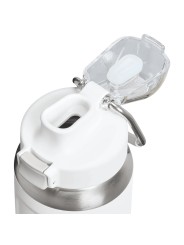 Mantiene tu agua o bebida fría durante horas gracias a su aislamiento al vacío de doble pared. Para beber, desliza el botón hacia abajo y la tapa a prueba de fugas se abre para revelar la boquilla. Al terminar, cierra la tapa para cerrarla herméticamente.
