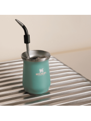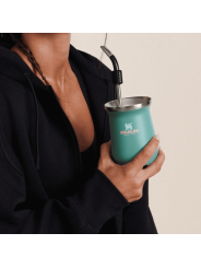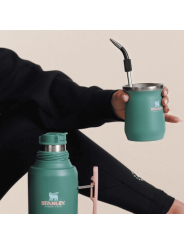 Equilibrio logrado. La colección Stanley 1913 x Anto es una poderosa fusión de serenidad inspirada en el verde salvia. El mate de 8oz tiene la forma tradicional de una calabaza y está fabricada en acero inoxidable. Su aislamiento al vacío de doble pared mantiene tu bebida a la temperatura ideal, para que puedas encontrar tu ritmo diario.Buenos días