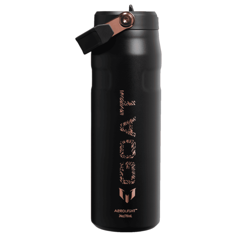 Empieza temprano. Quédate hasta tarde. Ese es el secreto. Esta colección Messi x Stanley 1913 en color negro Black Pebble viene con detalles en oro rosa pulido que celebran un legado forjado en años de arduo trabajo y dedicación, y a veces, un poco de magia. La IceFlow™ Flip Straw Lid de 710 ml usa la tecnología AeroLight™, que la hace un 33 % más ligera que la mayoría de las cantimploras de acero inoxidable.